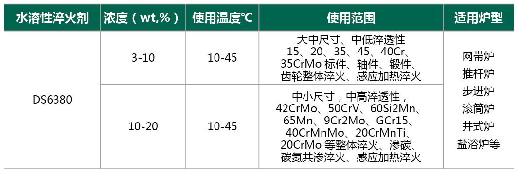 DS6380水溶性淬火液是一種基于聚烷撐二醇(PAG)等有機聚合物與功能助劑配制的水基淬火介質,具備逆溶性、不燃等特性,可通過調整濃度精準控制冷卻速度,適用于碳鋼、合金鋼、鑄鐵等材料的淬火工藝。