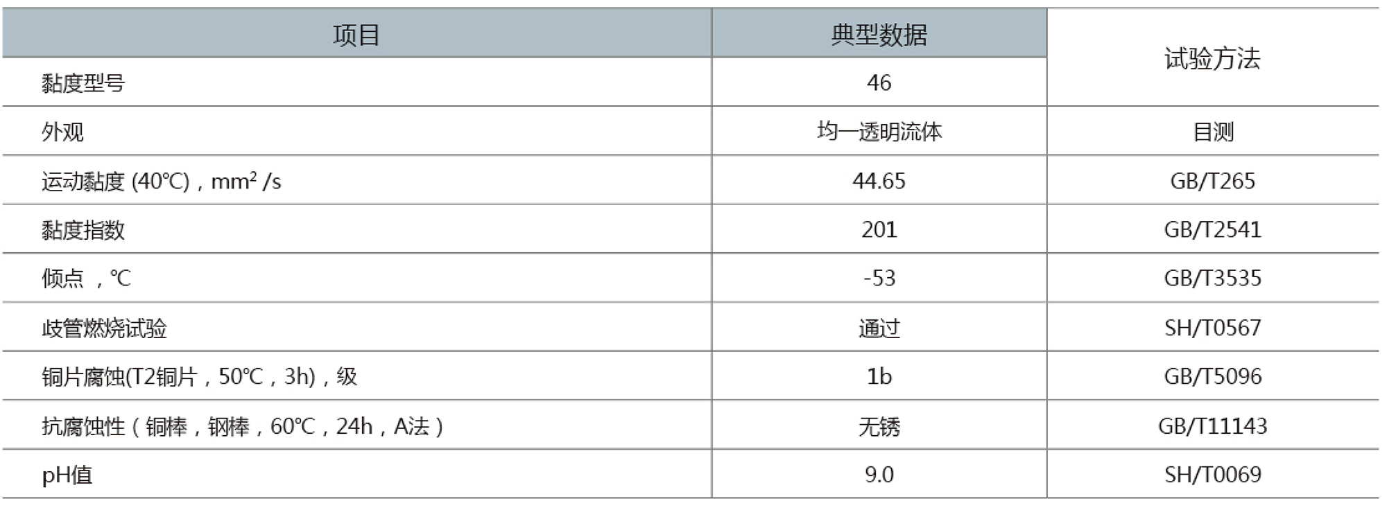 與以下品牌同類產品性能相當:長城4631·Houghton Safe620·Mobil Nyvac FR200D、Nyvac20.HFC46 ·BP Enersyn SF-C ·Shell Irus C46